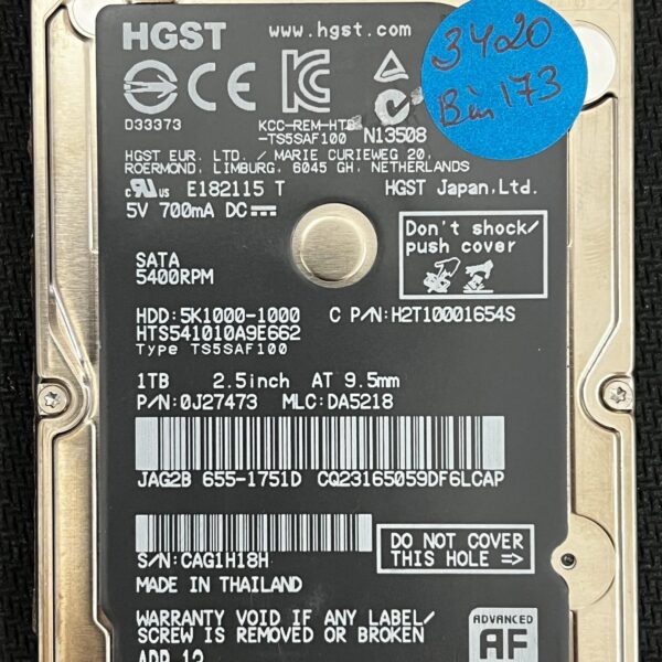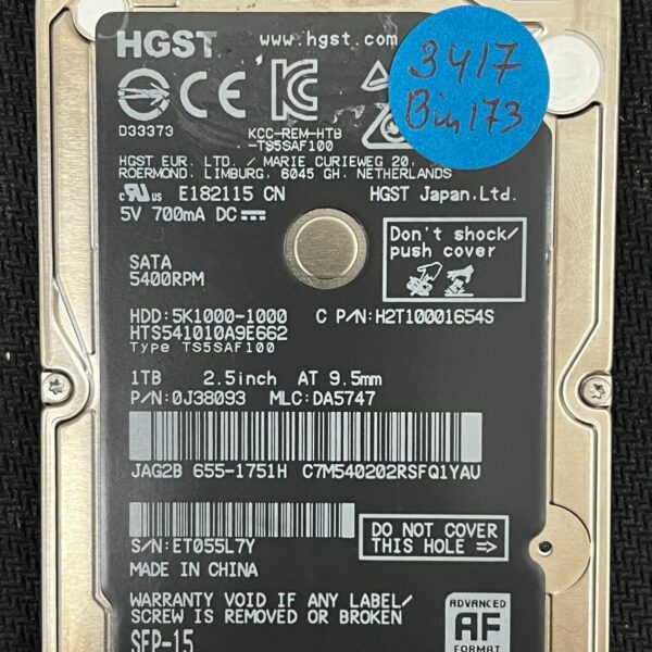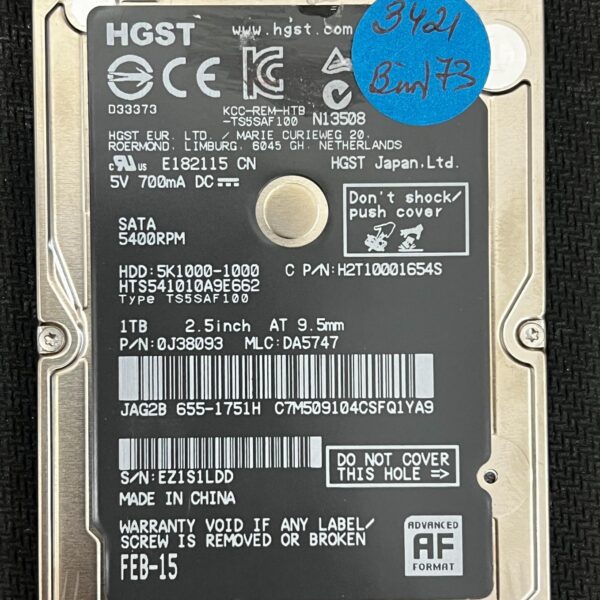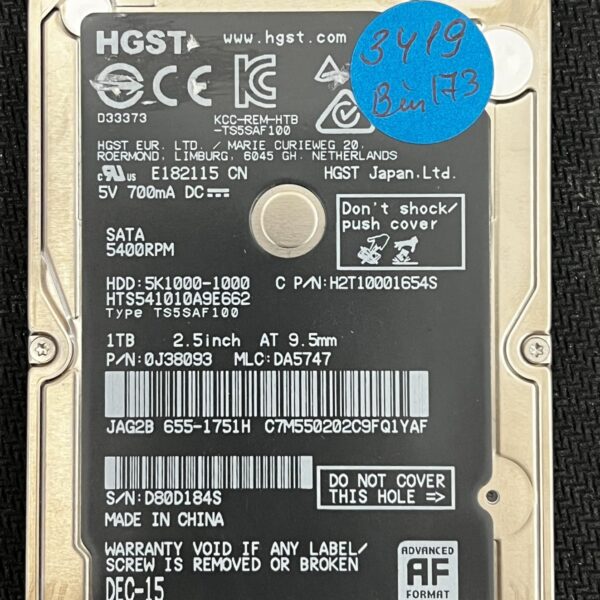 Full File Name: HGST HTS541010A9E632 HW009BAD 2017-05 1TB HDDModel: HTS541010A9E632Full Model: HGST HTS541010A9E632Series: Travelstar Z5K1000Capacity: 1TBInterface: SATA 6.0 Gb/s (SATA...