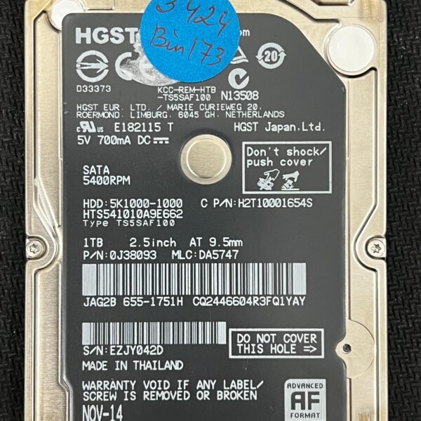 Full File Name: HGST HTS541010A9E662 EZJY042D 2014-11-01 1TB HDDModel: HTS541010A9E662Full Model: HGST Travelstar 5K1000-1000Series: Travelstar 5K1000Capacity: 1TBInterface: SATA 6.0 Gb/s...