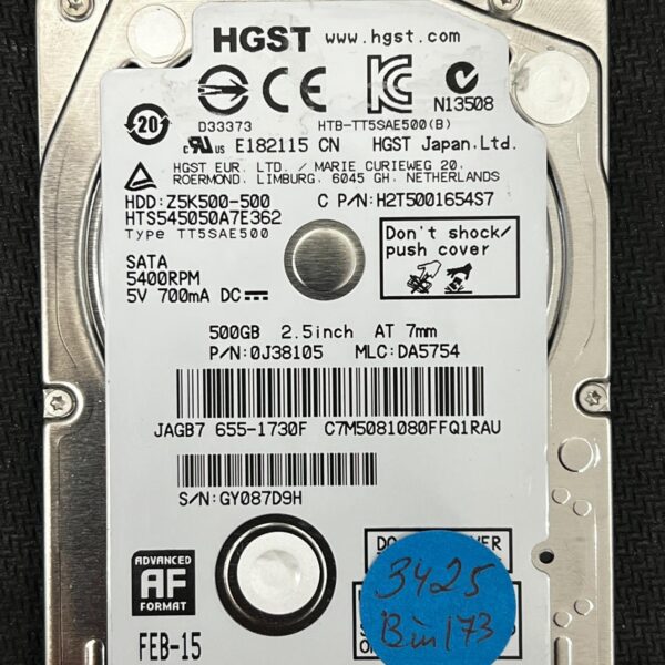 Full File Name: HGST HTS545050A7E362 GY087D9H 2015-02-01 500GB HDDModel: HTS545050A7E362Full Model: HGST Travelstar Z5K500-500Series: Travelstar Z5K500Capacity: 500GBInterface: SATA 3.0 Gb/s...
