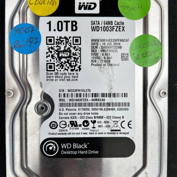 Full File Name: WESTERN DIGITAL WD1003FZEX WCC3FH1VL2T5 2014-07-16 1TB HDD Brand: Western Digital Series: WD Black Drive Type: HDD Form...