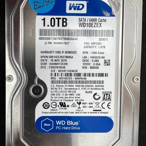 Full File Name: WESTERN DIGITAL WD10EZEX WCC6Y1UC85ZK 2016-11-16 1TB HDD Brand: Western Digital Series: WD Blue Drive Type: HDD Form...