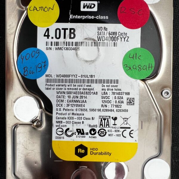 Full File Name: WESTERN DIGITAL WD4000FYYZ WMC130334025 2014-06-10 4TB HDD Brand: Western Digital Series: WD Re (Enterprise Class) Drive Type:...