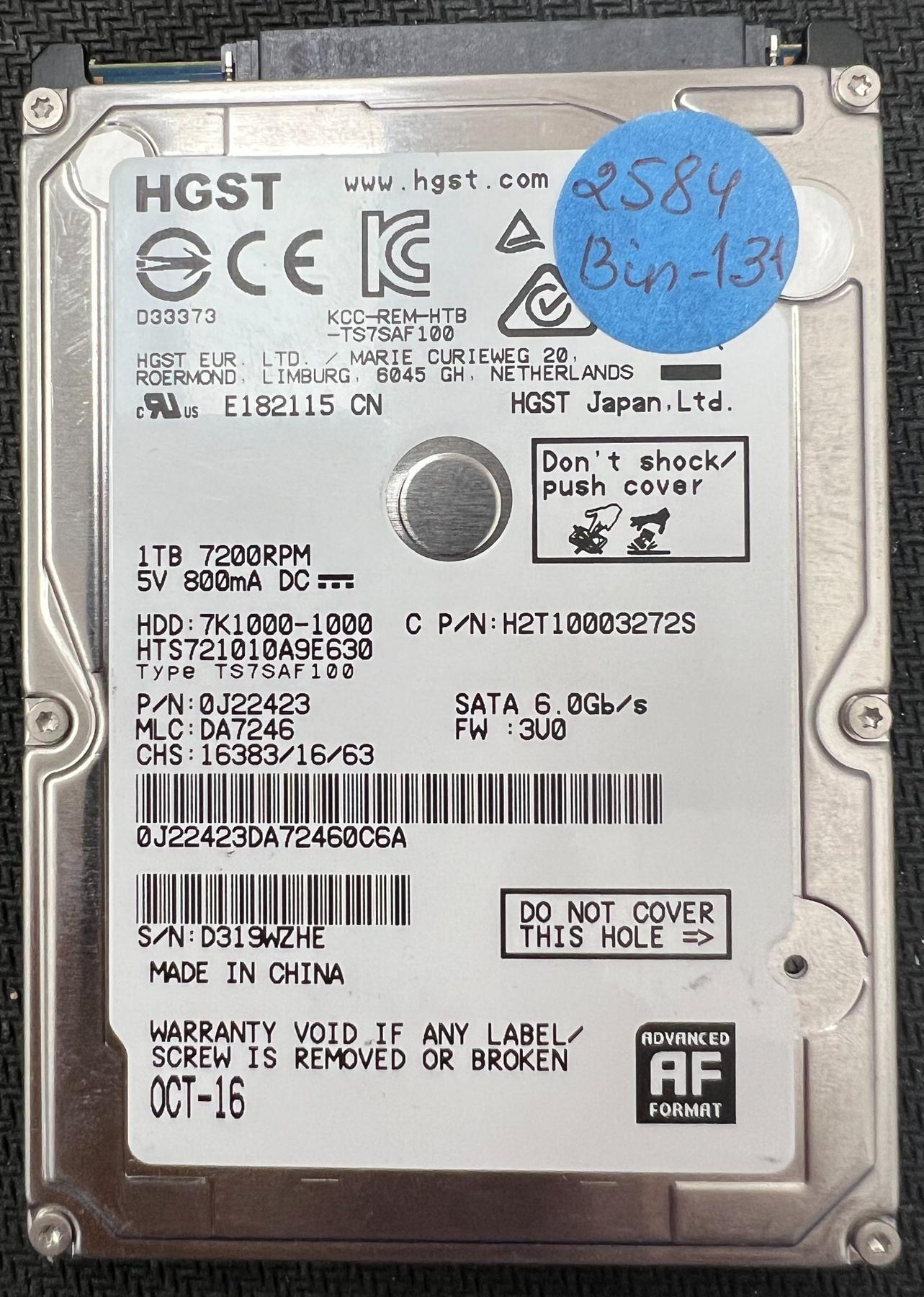 Full Product Name: HGST HTS721010A9E630 D319WZHE 1TB 2016 HDD