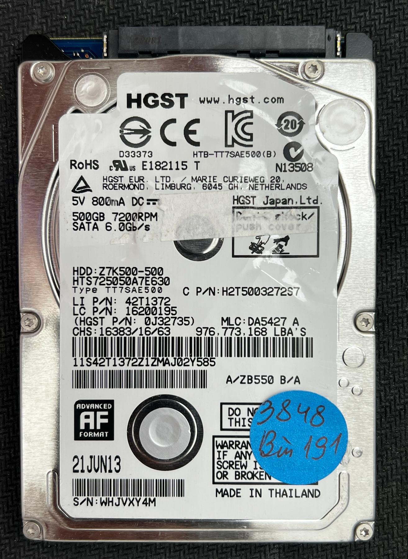Full File Name: HGST HTS725050A7E630 WHJVXY4M 2013-06-21 500GB HDD