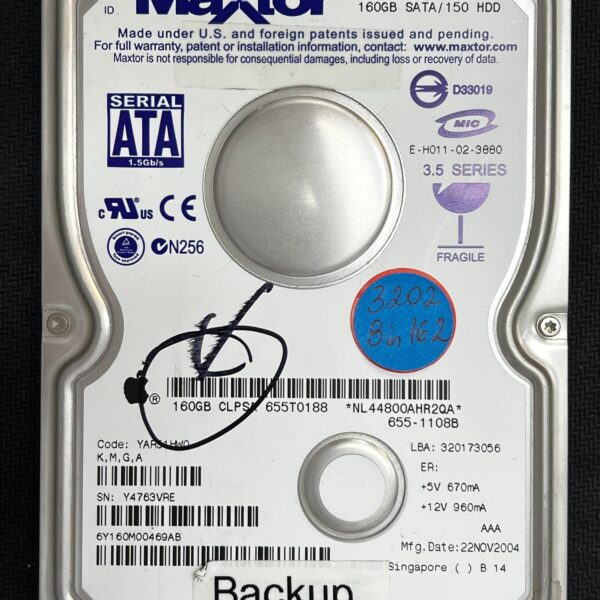 Full File Name: MAXTOR 6Y160M00469 Y4763VRE 2004-11-22 160GB HDD